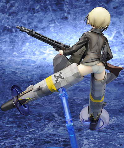 大ヒットTVアニメ「ストライクウィッチーズ」より、 エーリカ・ハルトマンを立体化した「ストライクウィッチーズ エーリカ・ハルトマン(1/8スケール)」が、コトブキヤから5月に発売される。16歳ながらボーイッシュで子どもっぽい外見のエーリカを、そのまんま見事に再現したロリロリなフィギュアで、お尻にピッタリと貼り付いた薄緑のローレグ(ハイレグの反対)とのアンバランスさが素晴らしい。
