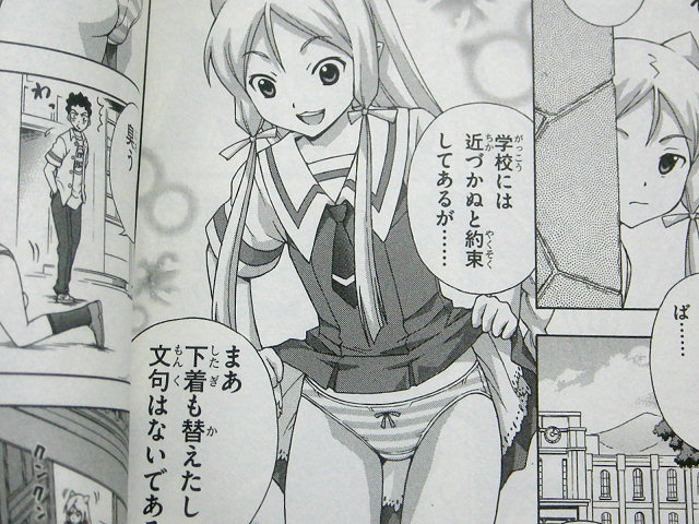 書籍情報では『孝太郎の前に美少女神さま狐葉が降臨!…って彼女の正体は貧乏神!?温泉宿を舞台にヒットメーカー・百瀬武昭が贈る、ちょっとエッチなハプニング満載の“らっきー☆あんらっきー”ラブコメ、開幕!』などで、幼女体型をした神さまがブルマやスク水姿をしてた他、縞パンやアソコ丸見えの穴あきパンツ穿いたり、全裸で迫っていた。