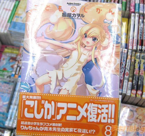 こどものじかん8巻のオビでは『重大発表!「こじか」アニメ復活!』・『超過激小学生ラブコメ第8弾!